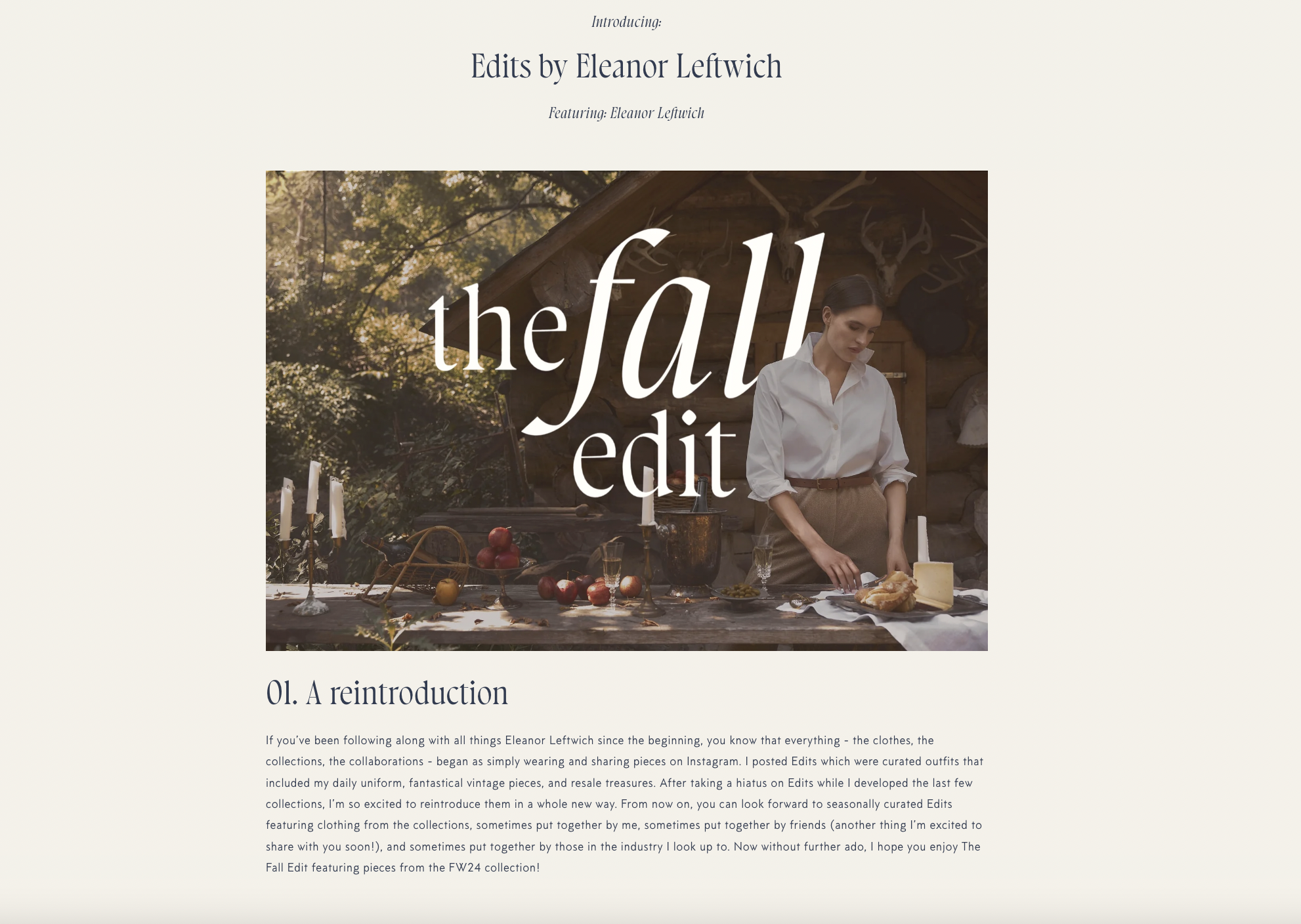 First things first: address the brand’s foundation & position Eleanor Leftwich as a thought leader in the world of sustainable fashion.