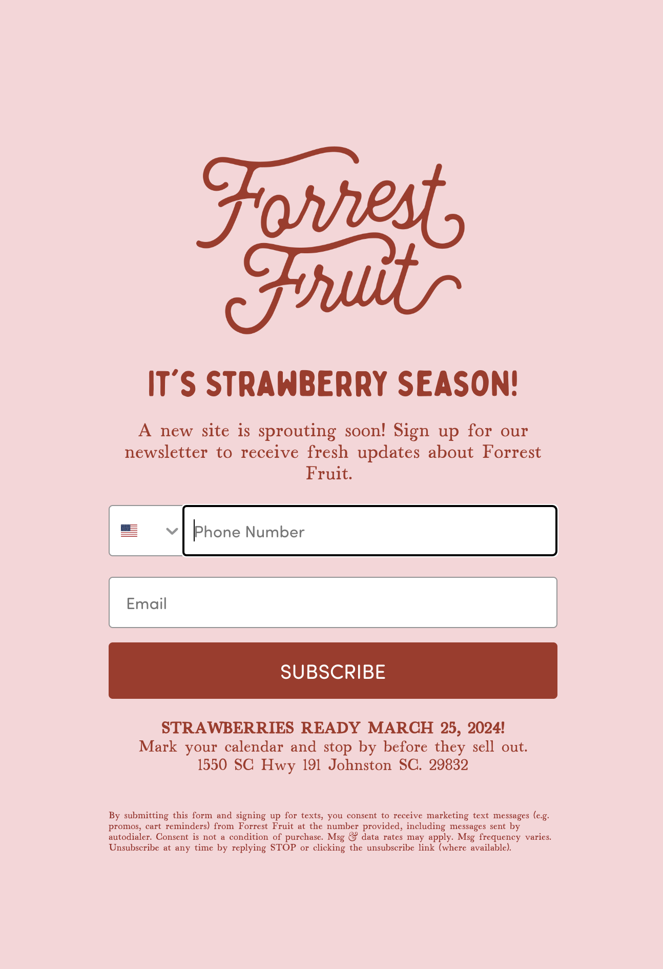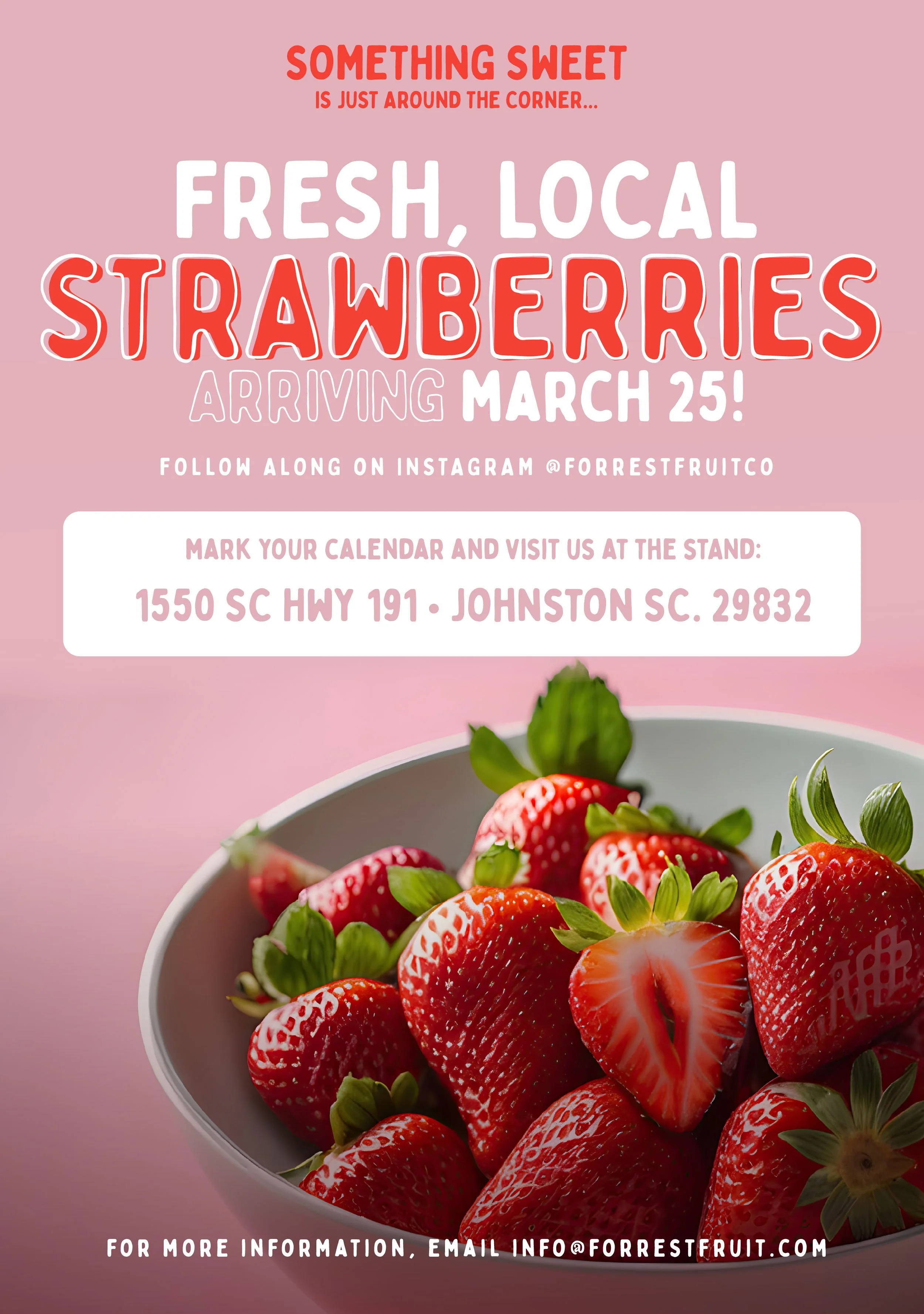 With generations of expertise and attention to detail, Forrest Fruit uses innovative technology to safely and sustainably produce only the finest fresh fruit for you and your family. Located in Johnston, SC, and sold in their famous pink buckets, Forrest Fruit's seasonal strawberries are a must-have for locals.